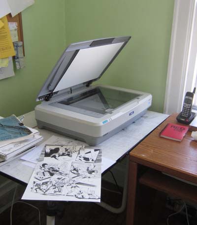 Ain’t she something? I finally feel like a man! And the instructions assure me she can raster 1200 x 3600 pixeldots per scuzicycle! Whatever the fuck that means! All I knows is that my artworks don’t gots to be scanned in sections no mer’! Thanks, Blockheads!