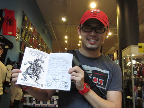 | This man asked me to sign his book “To My Biggest Fan”. He also had me sign it on his penis, which was awkward because he already had Rob Liefeld’s signature tattooed there, and Rob really hogged the shaft. |