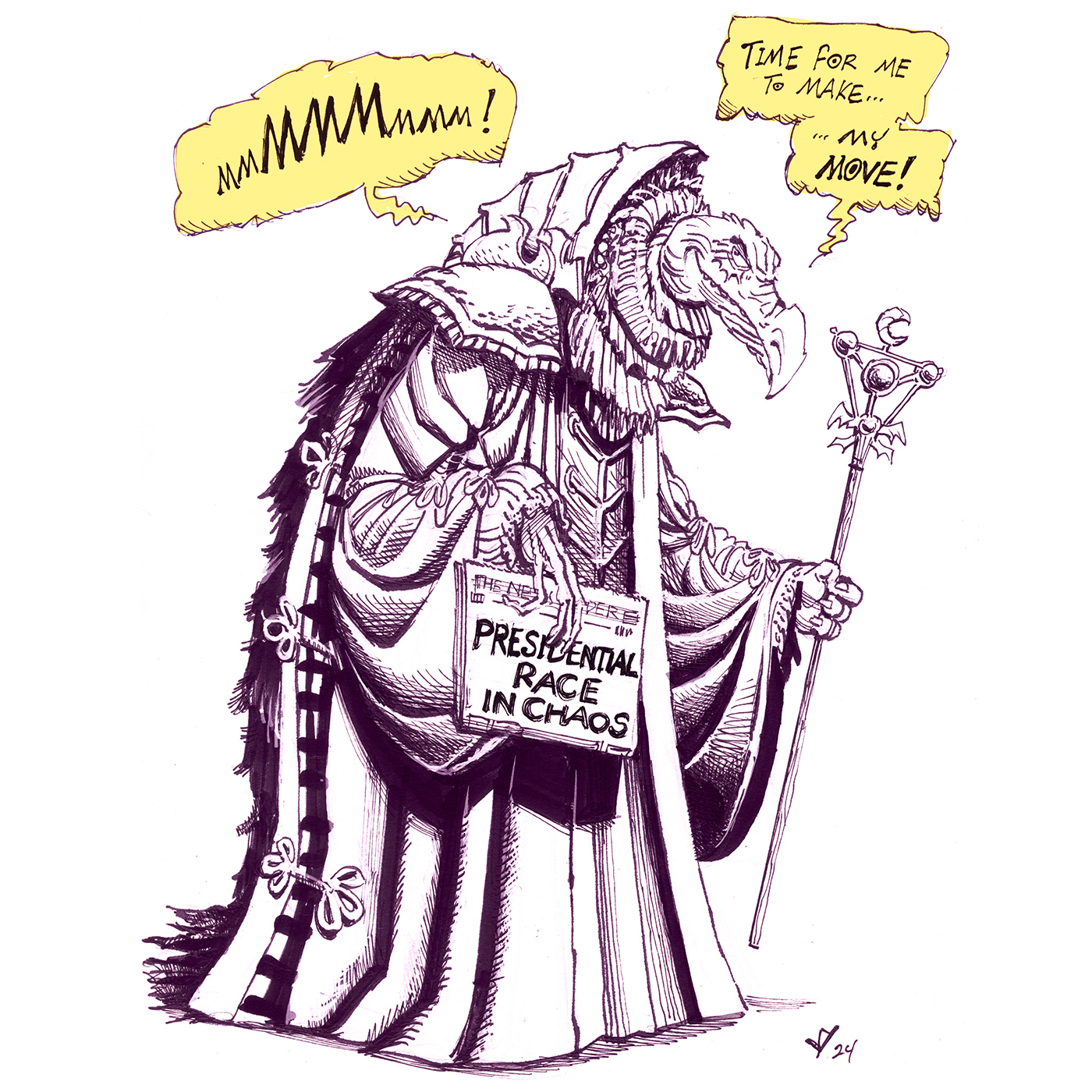 President Skeksis by JY on July 11, 2024 at 3:08 pm Posted In: Blogginz Look out, Kamala! └ Tags: Biden, cartoon, comic, dark crystal, Jason Yungbluth, kamala harris, parody, political cartoon, skeksis