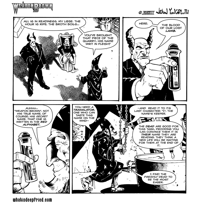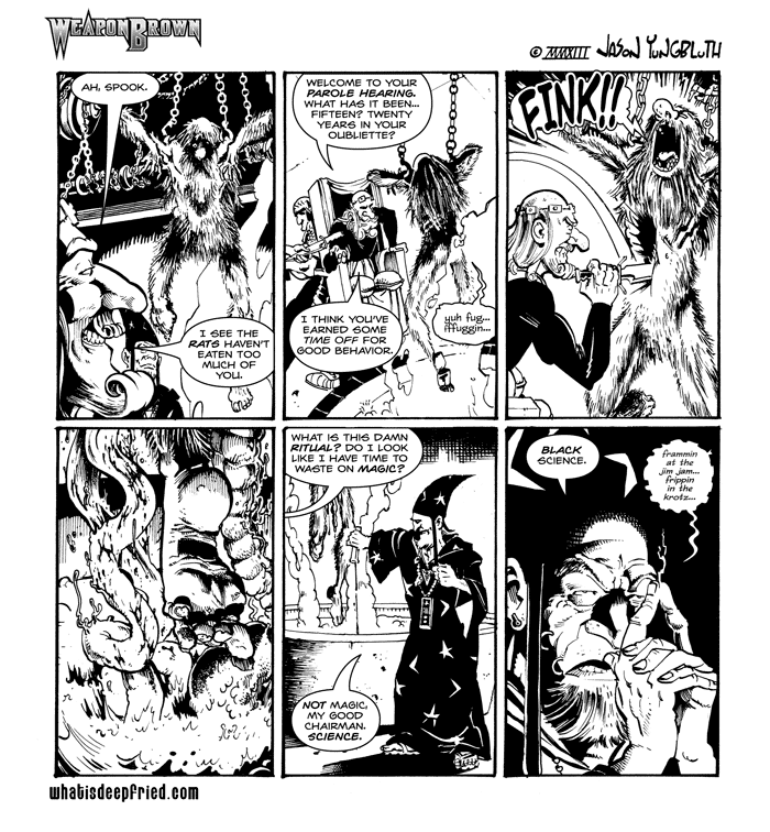 For reasons beyond my control, I cannot bring you today’s Weapon Brown. It will be back tomorrow. Why can’t I show you a comic I drew years ago? You’d be amazed. …