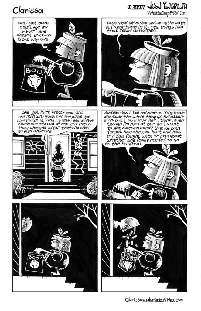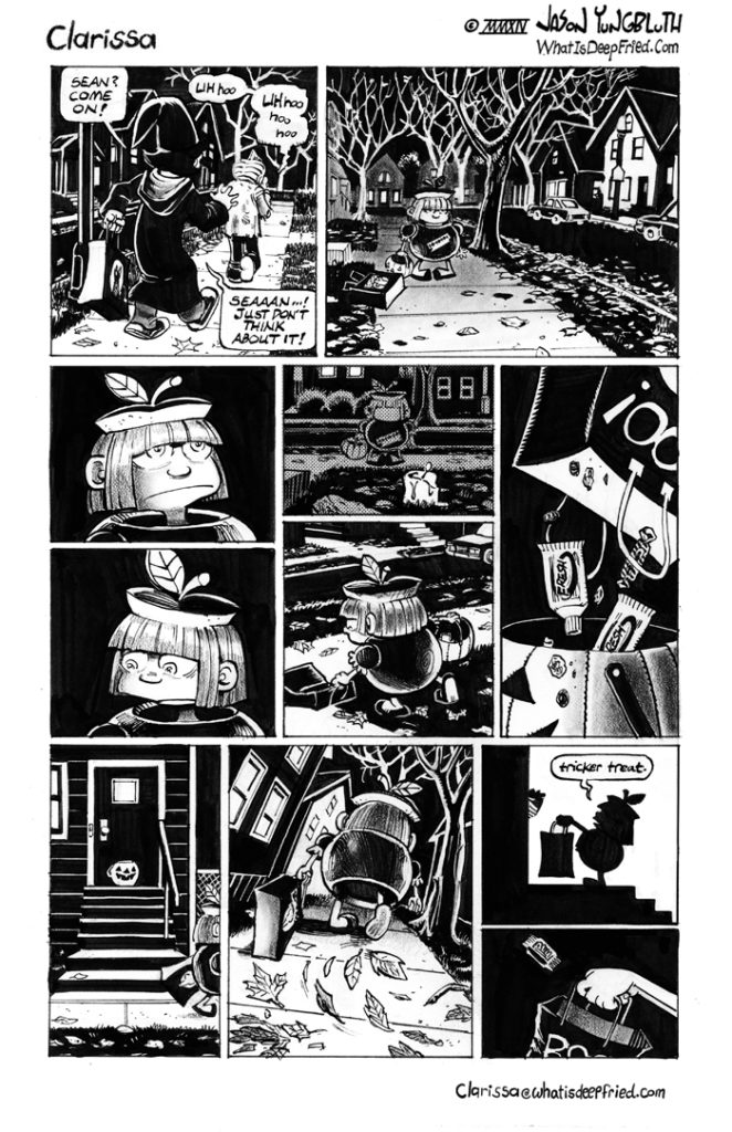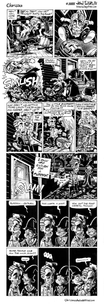 AT LAST! Just in time for Christmas, the end of Clarissa’s Halloween odyssey. I am leaving this until Monday for all the people who have been waiting for it, and Weapon Brown will update on Tuesday.