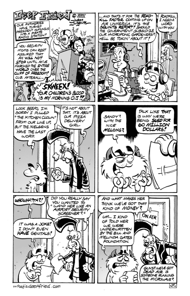 Air Unmerica by JY on October 20, 2004 at 4:04 pm Chapter: 3 Air Unmerica └ Tags: Air America, Beepo, Deep Fried, Jason Yungbluth, Roadkill Comment