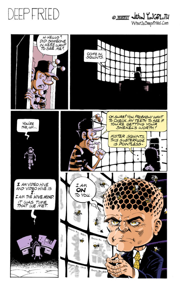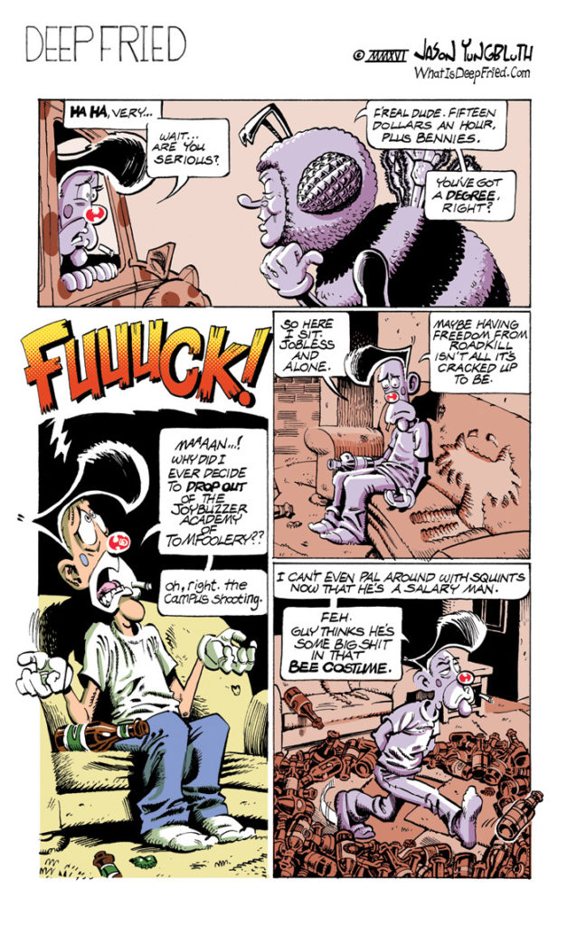 Tension! Friction! Naked clowns! Today’s strip has everything Deep Fried is famous for! I am currently assembling the comic book edition of the previous Deep Fried story arc, “Out of the Frying Pan”, and I need your praise, damnation and inquiries[…]↓ Read the rest of this entry…