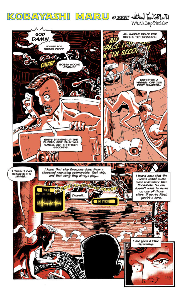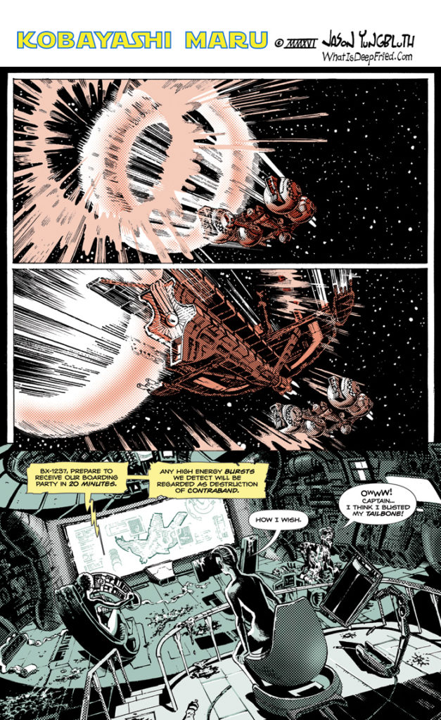 The sharp-eyed among you will notice that Yama, our ship’s captain, looks a little different today. I decided that I wasn’t quite finished designing her look and have added some stylin ‘tattoos to Yama’s head. I will explain the meaning of[…]↓ Read the rest of this entry…