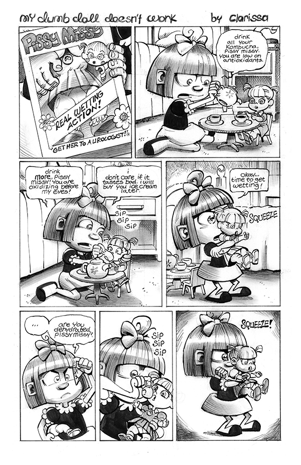 These pages are from the 2019’s comic Clarissa Saves Halloween. Click on the thumbnails to see a larger image. The art is pen & ink or pen & ink and pencil on Bristol board, 11″ x 17″. Contact Jason Yungbluth here with your purchase inquiries! (Including inquiries about pages not listed here.)