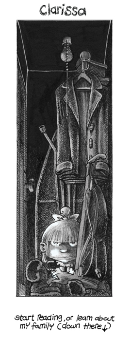 Your Clarissa comics are absolutely amazing. I love how blunt and clever the writing is, how you breathe life into Clarissa as a character in such a way that what she goes through feels real and relatable and not just there for shock value only. I sincerely hope you plan on finishing the series someday, that would be awesome. You rock.