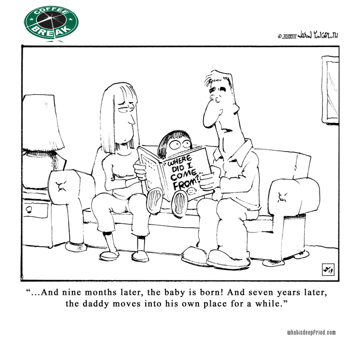 Coffee Break: The Facts of Life by JY on April 12, 2013 at 7:37 am Chapter: COFFEE and CREAM └ Tags: "Where Did I Come From?", Comics, daughter, divorce, parents, separation, sex education
