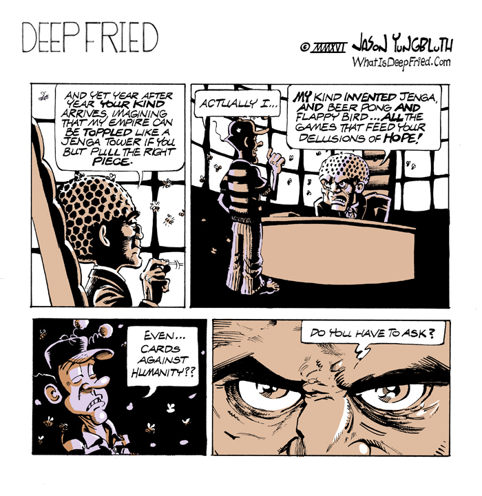 FOUR panels?! LUXURY! When we were following Weapon Brown, there were times we had ONE panel to last us days, even WEEKS! And we were GRATEFUL for the privilege of licking JY’s shiny, black, goose-stepping boots!