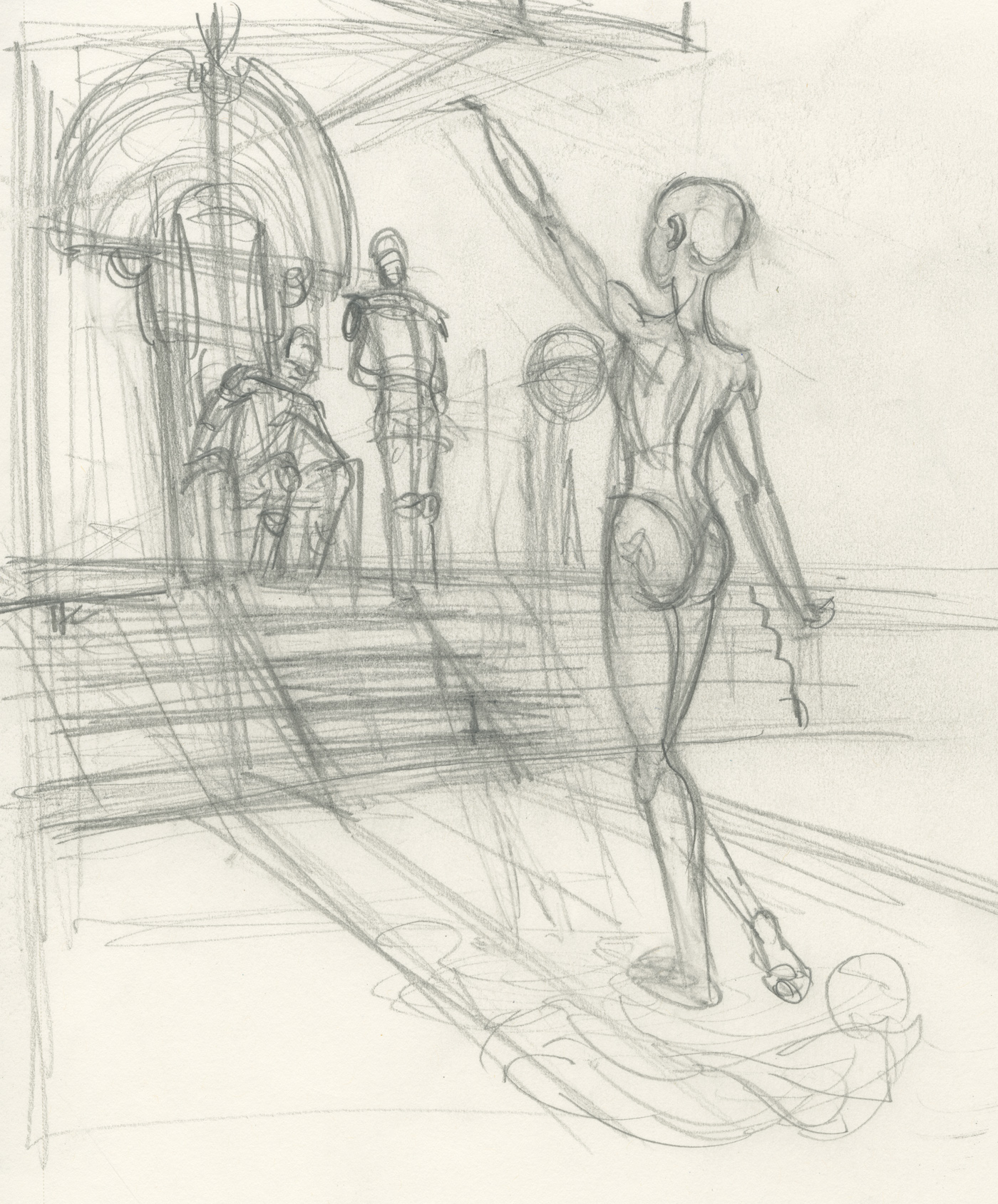 This week, as I wrap up April Fool’s Month, you can follow along as I develop an illustration I have been fiddling with in my sketchbook for a few weeks now–a scene from the novel Dune. I’ll share the stages of the art with you as I complete them and debut the finished work on Friday. I’ll also toss in another Fat Data strip along the way. Aren’t I nice?