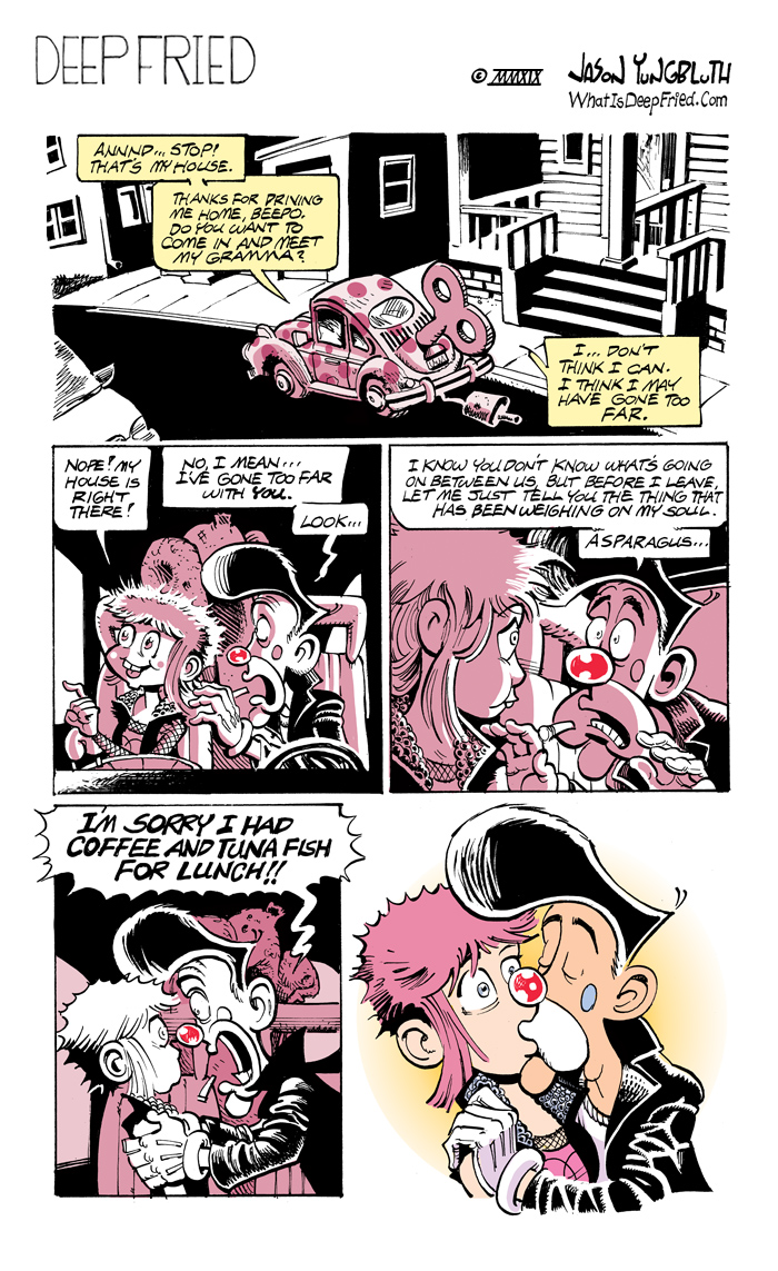 Wow! What a development! Now keep holding your breath: Next week’s cartoon is on hold while I dive deep into some Weapon Brown business. The sure-to-be-talked-about follow through will arrive two Fridays from now!