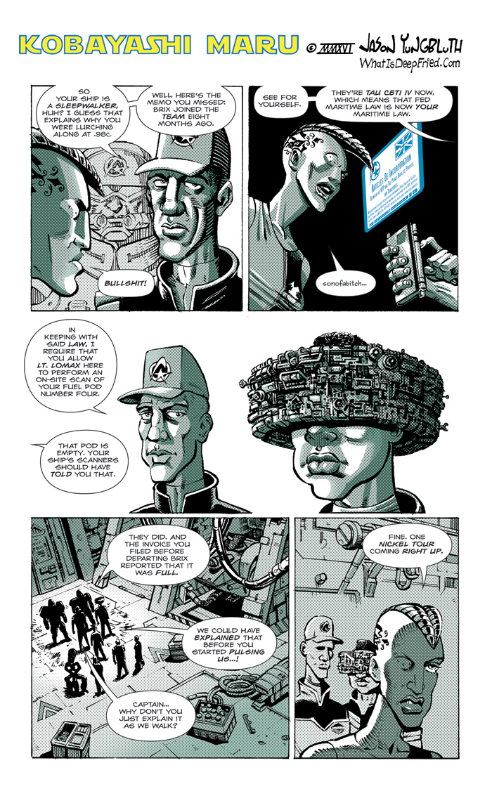 Kobayashi Maru 13 by JY on April 1, 2017 at 10:47 pm Chapter: 1 Uncaged └ Tags: Chapter 01, comic, Comics, space, Star Trek, Tau Ceti IV, UFP, yungbluth