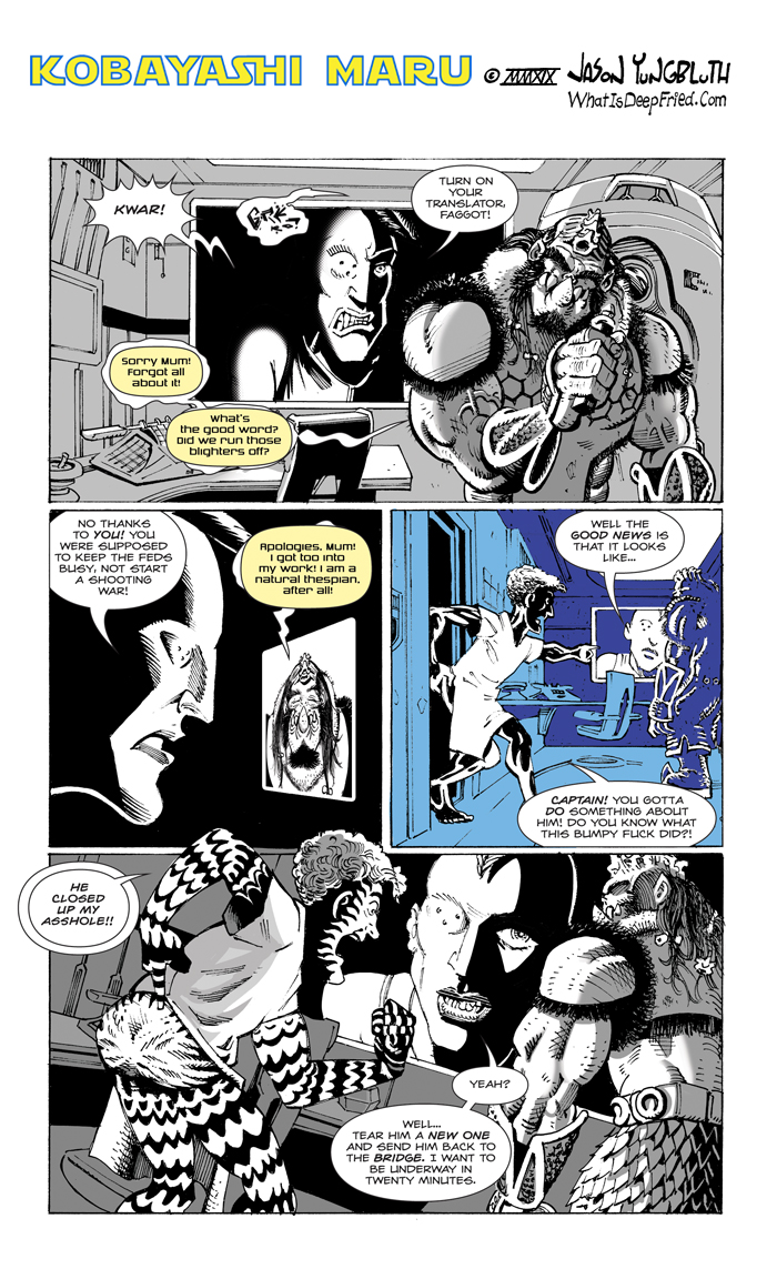 Kobayashi Maru 30 by JY on October 21, 2019 at 12:00 am Chapter: 1 Uncaged └ Tags: Clarissa, comic, Deep Fried, Jason Yungbluth, kobayashi maru, sci-fi, star trej, Weapon Brown