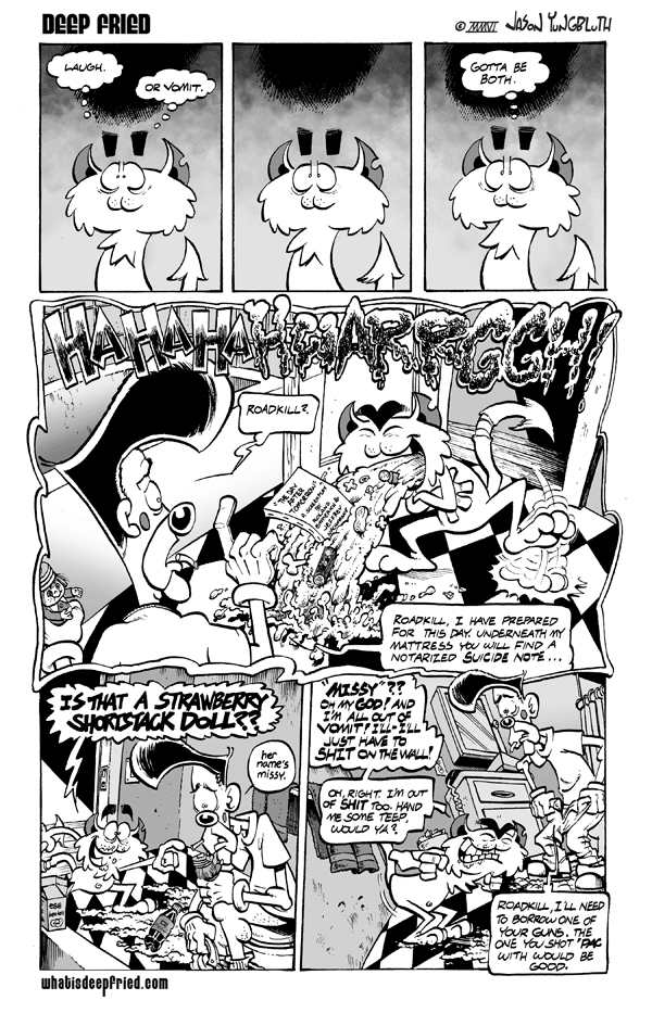 Scent of a Pancake-3 by JY on December 24, 2007 at 4:00 pm Chapter: 7 Pancake └ Tags: Beepo, Deep Fried, goth, Jason Yungbluth, masturbation, Roadkill, scent of a pancake, strawberry shortcake