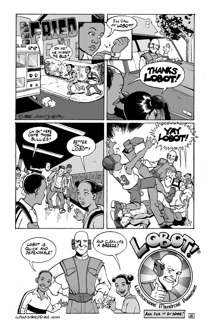 Lobot by JY on March 10, 2004 at 3:23 pm Chapter: 1 Mixed Nutz └ Tags: Beepo, bullies, Deep Fried, Jason Yungbluth, lobot, Roadkill, star wars