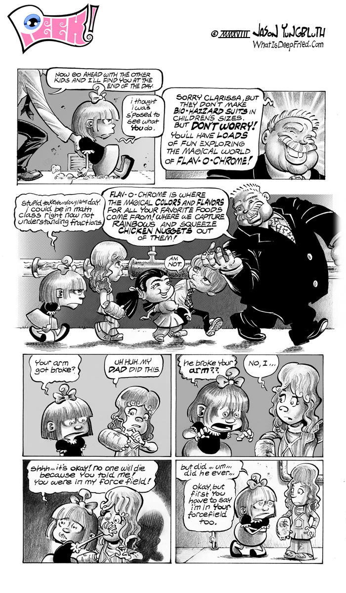 Peek the First 19 by JY on March 22, 2018 at 12:00 am Chapter: 1 Peek the First └ Tags: Clarissa, comic, homor, Marvel, parody, peek, peeker, sci-fi, super friends, Watcher, yungbluth