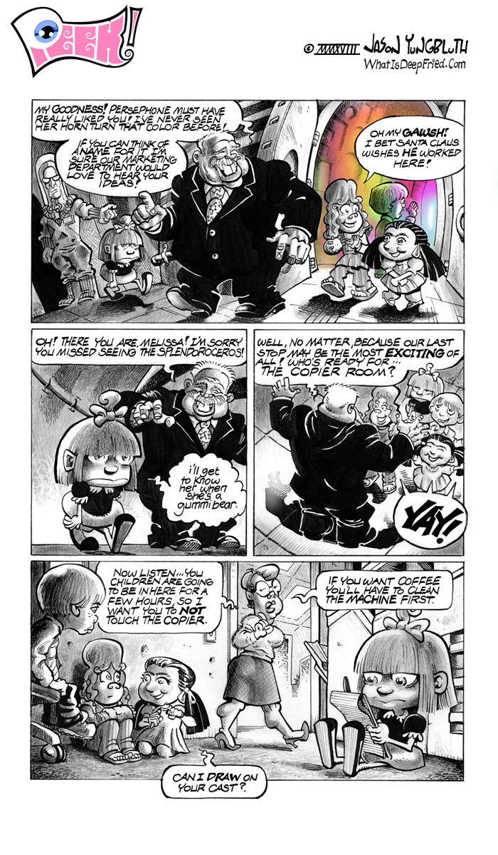 Peek the First 27 by JY on April 3, 2018 at 12:00 am Chapter: 1 Peek the First └ Tags: Clarissa, comic, homor, Marvel, parody, peek, peeker, sci-fi, super friends, Watcher, yungbluth