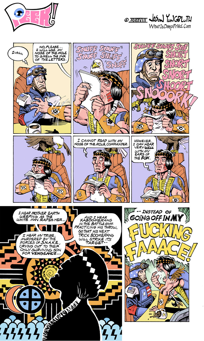 Peek the First 5 by JY on March 2, 2018 at 12:00 am Chapter: 1 Peek the First └ Tags: Clarissa, comic, homor, Marvel, parody, peek, peeker, sci-fi, super friends, Watcher, yungbluth