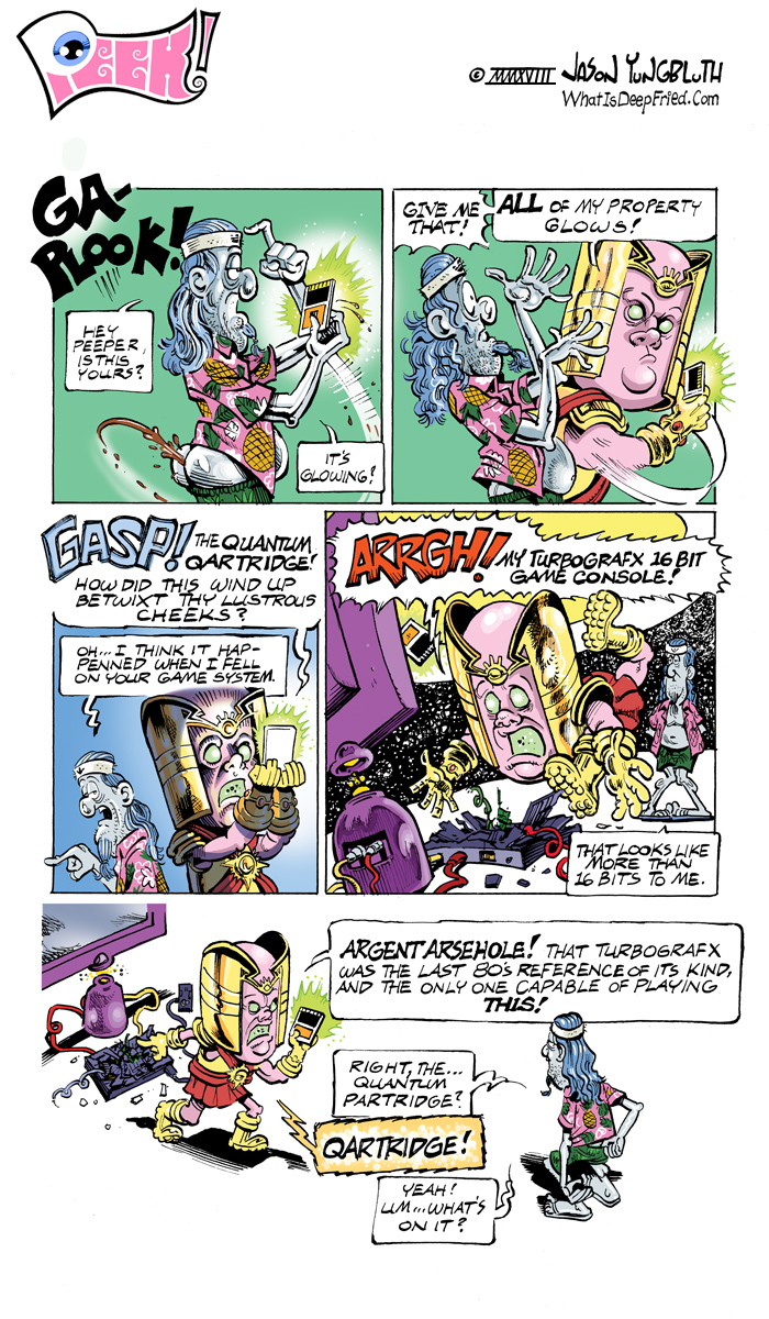 Peek the Second 3 by JY on May 14, 2018 at 12:00 am Chapter: 2 Peek the Second └ Tags: Infinity War, Jason Yungbluth, peeker, Silver Couch Surfer, TurboGrafx, video games