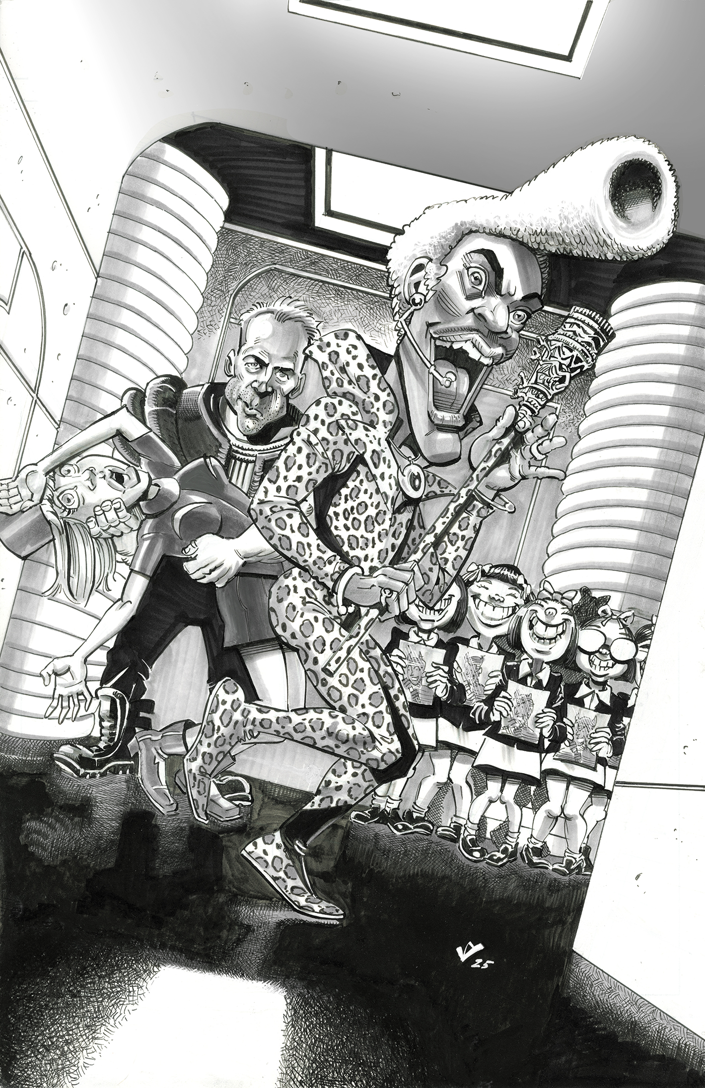 Schizophrenemies 8 by JY on September 12, 2025 at 12:09 am Chapter: 15 Schizophrenemies Not enough cartoon for you? Then enjoy this pin-up of all-time greatest space broadcasting legend Ruby Rhod! Own the original art! └ Tags: Beepo, cartoon, comic, Deep Fried, hamster, Jason Yungbluth, Roadkill, Shamus McGoldstein, Slamwich