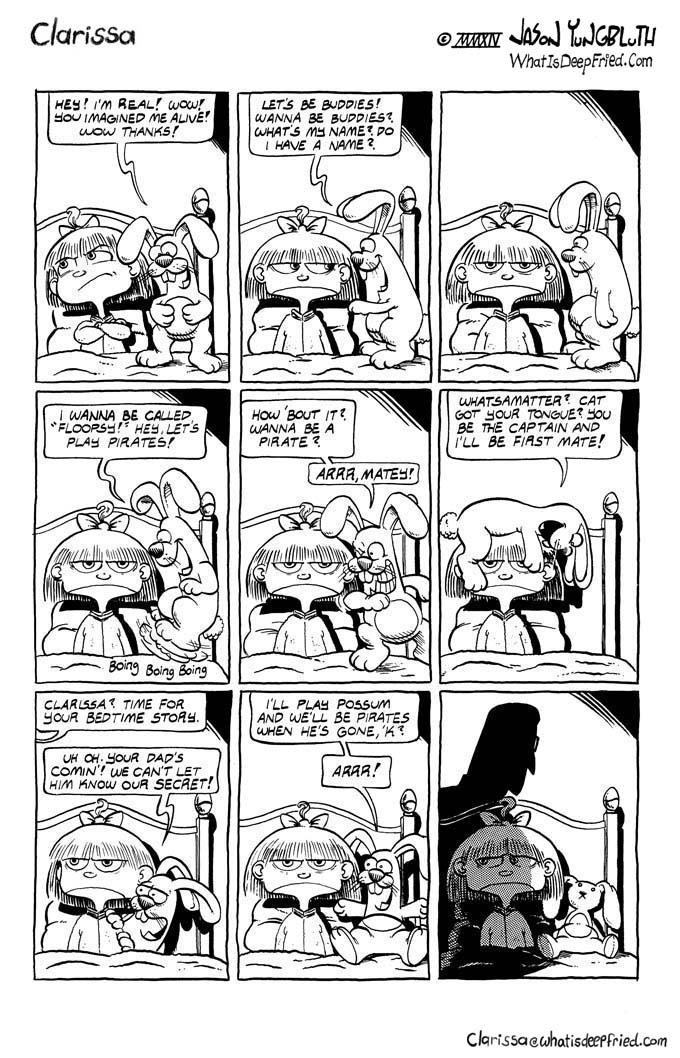 Stuffed Friend 3 by JY on January 9, 2001 at 12:00 am Chapter: 3 Stuffed Friend └ Tags: bedtime, bunny, Clarissa, Daddy, Floopsy, toys