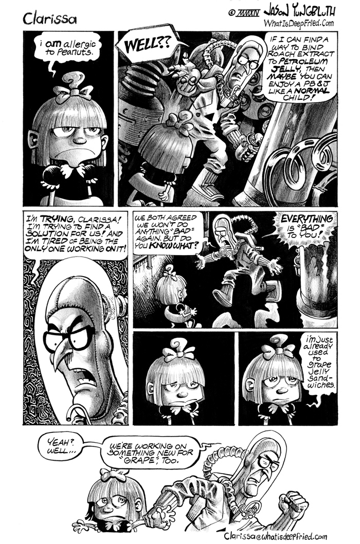 @Fingal…my brother in Christ, you are giving papa rapist too much credit. Like two pages ago, he revealed that he didn’t even know that Clarissa had a peanut allergy. Peanut allergies are potentially life-threatening; if this dude cared about his kid in any case, he wouldn’t rape her, first of all- but that detail of the peanut butter pretty much rang home that he doesn’t actually give a shit about her. He cares about his status as a provider and a father. He only cares about diffusing any further discord from “the problem child” so that his social capital isn’t threatened. Also I’m really high and fired up that these comics have an ending at all so excuse my passionate response to your take! I’m happy somebody else is still reading them all these years later