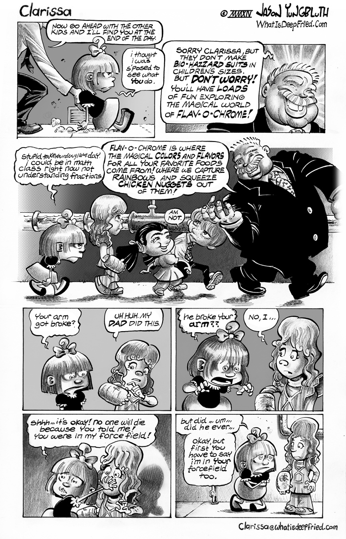 Join the Clarissa mailing list at: clarissa (the symbol for “at”) whatisdeepfried.com to be kept up to date on all of Clarissa’s sad happenings!
