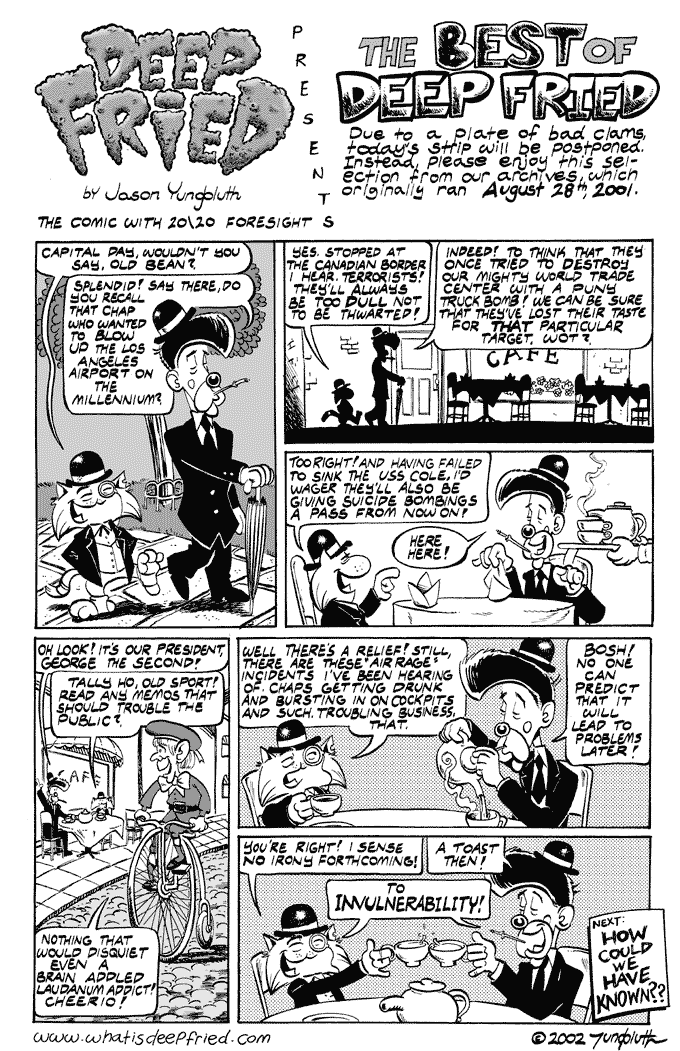 The Best of Deep Fried by JY on May 20, 2002 at 11:23 am Chapter: 1 Mixed Nutz └ Tags: 9/11, Beepo, Deep Fried, Jason Yungbluth, Roadkill