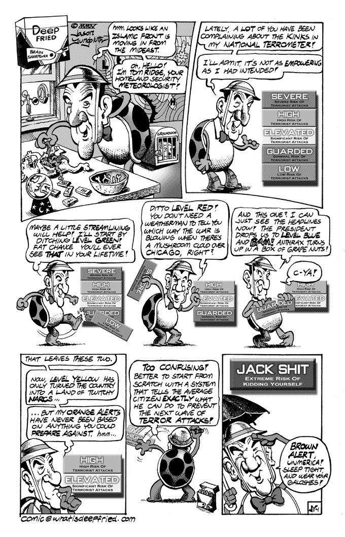 Waste the Rainbow by JY on August 16, 2004 at 3:54 pm Chapter: 1 Mixed Nutz └ Tags: Beepo, Deep Fried, Jason Yungbluth, Roadkill, Terror Alert System
