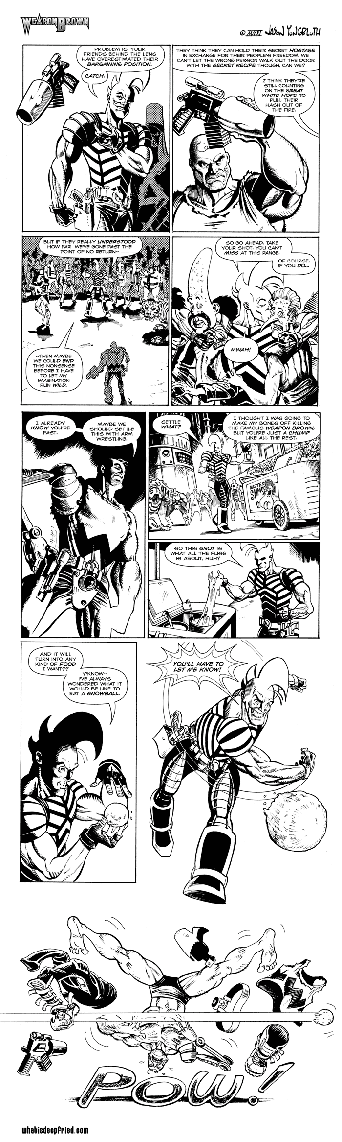 Weapon Brown 225 by JY on February 17, 2014 at 12:00 am Chapter: 10 Keepsies └ Tags: apocalypse, baseball, Calvin, Charlie Brown, pitcher's mound