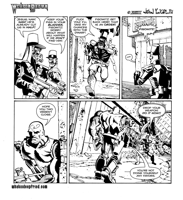 I fully expected Figowitz to turn up somewhere, but I also expected a gag about breaking his legs, which is what Crock did on a regular basis. Since there’s no point in breaking a corpse’s legs, I guess that won’t happen now. 8(