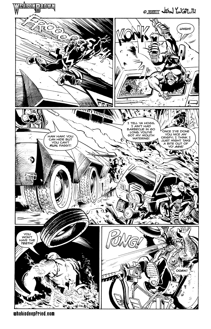 I don’t know about that last panel…the fact that he has hair all the way to the nipple…it’s horrible…it’s like a train wreck, I just can’t look away, yet I am disgusted by it…