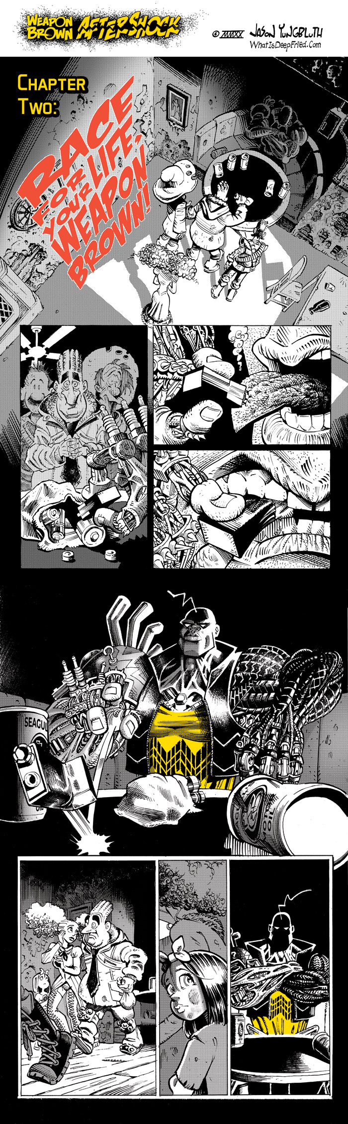 Weapon Brown Aftershock 12 by JY on February 3, 2020 at 12:00 am Chapter: 12 Aftershock Want some of my red hot politics?? Read “Meltdown”! My subscribers see things that are out of this world! └ Tags: Aftershock, Calvin and Hobbes, cartoon, Charlie Brown, comic strips, Frank Miller, fusco brothers, Jason Yungbluth, mike mignola, Peanuts, Tumbleweeds, Weapon Brown