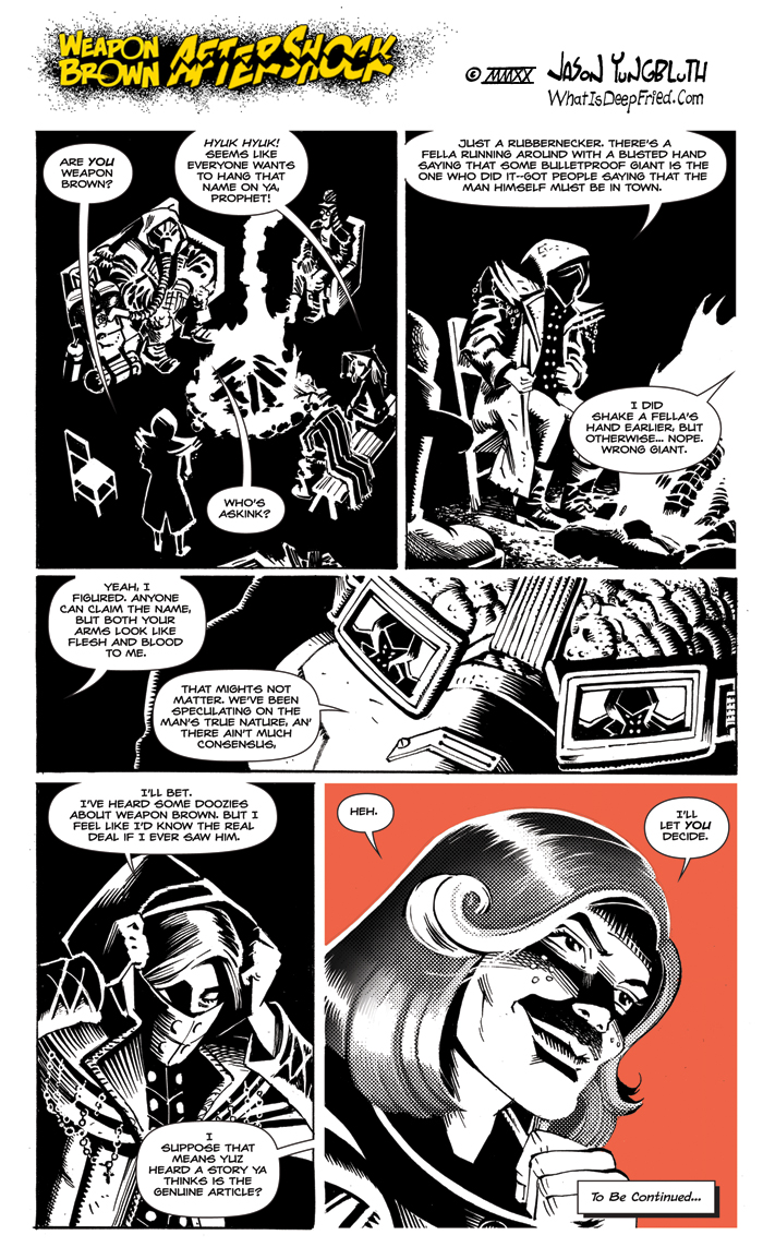 Wait! Put down the gummi razor blade! For the next month you will instead be forcibly delighted by the first chapter of The Idiodyssey, the next installment of Deep Fried: The Hero’s Journey! And to make this all go down easier, you will get two strips a week, on Monday and Friday, until Aftershock returns.
