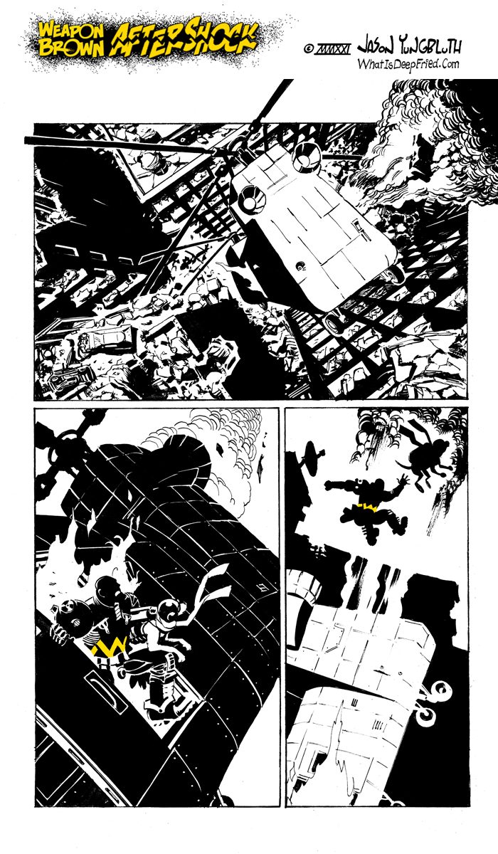 Weapon Brown Aftershock 54 by JY on January 26, 2021 at 11:49 am Chapter: 12 Aftershock └ Tags: apocalypse, cartoon, charles schulz, Charlie Brown, comic, Frank Miller, helicopter, Jason Yungbluth, Sin City