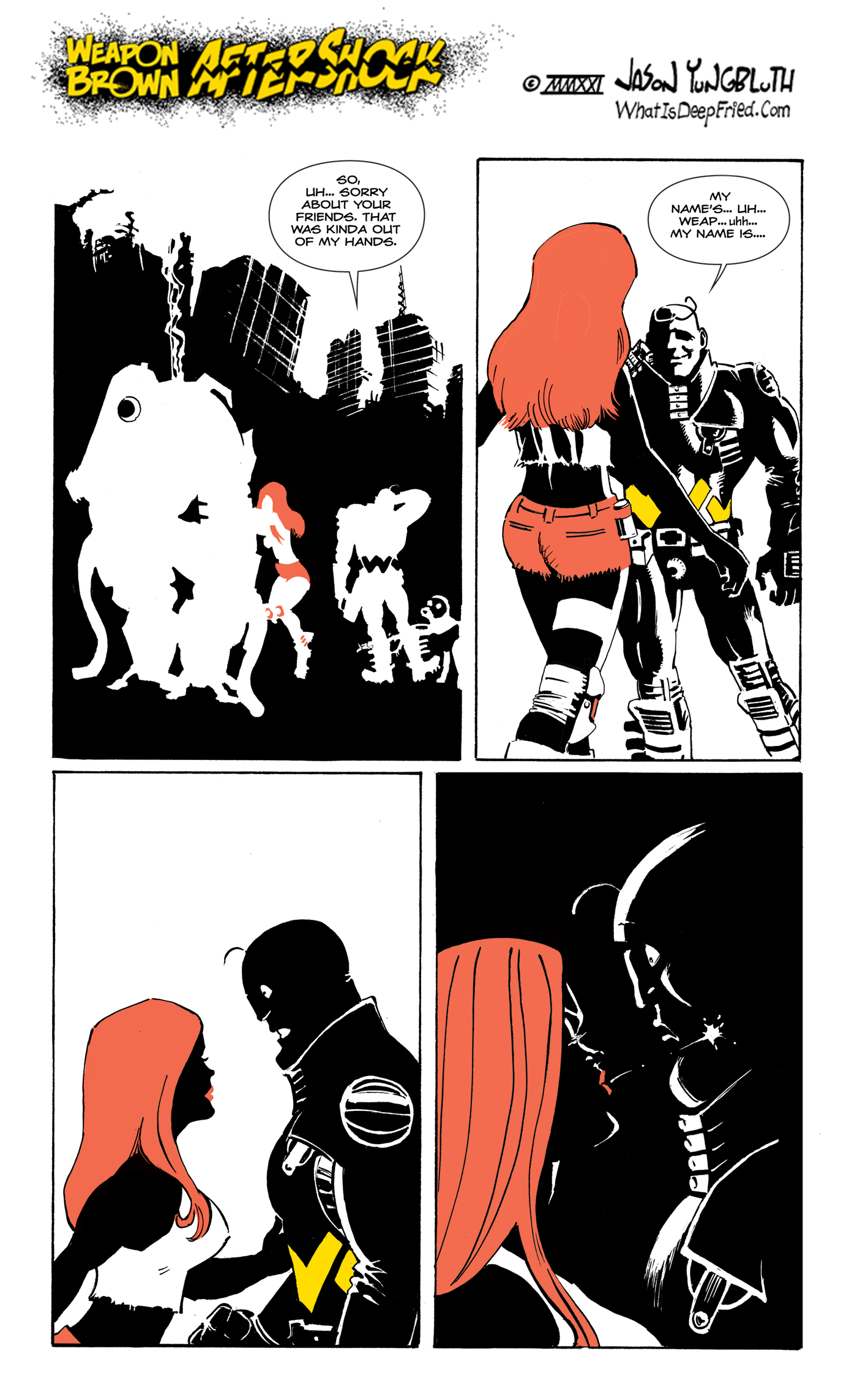 Weapon Brown Aftershock 85 by JY on September 13, 2021 at 12:00 am Chapter: 12 Aftershock └ Tags: apocalypse, cartoon, charles schulz, Charlie Brown, comic, Frank Miller, Jason Yungbluth, post-apocalyptic, Sin City