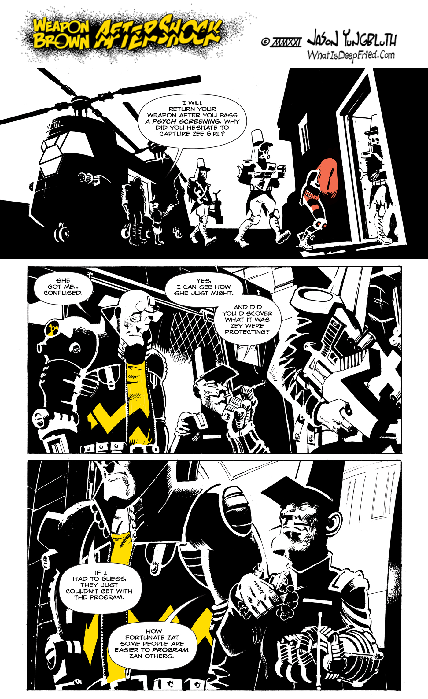 Weapon Brown Aftershock 89 by JY on October 4, 2021 at 12:00 am Chapter: 12 Aftershock Enjoy this page in all of its naked, partially finished audacity! … Only my SUBSCRIBERS know what true happiness is! └ Tags: apocalypse, cartoon, charles schulz, Charlie Brown, comic, Frank Miller, Jason Yungbluth, post-apocalyptic, Sin City