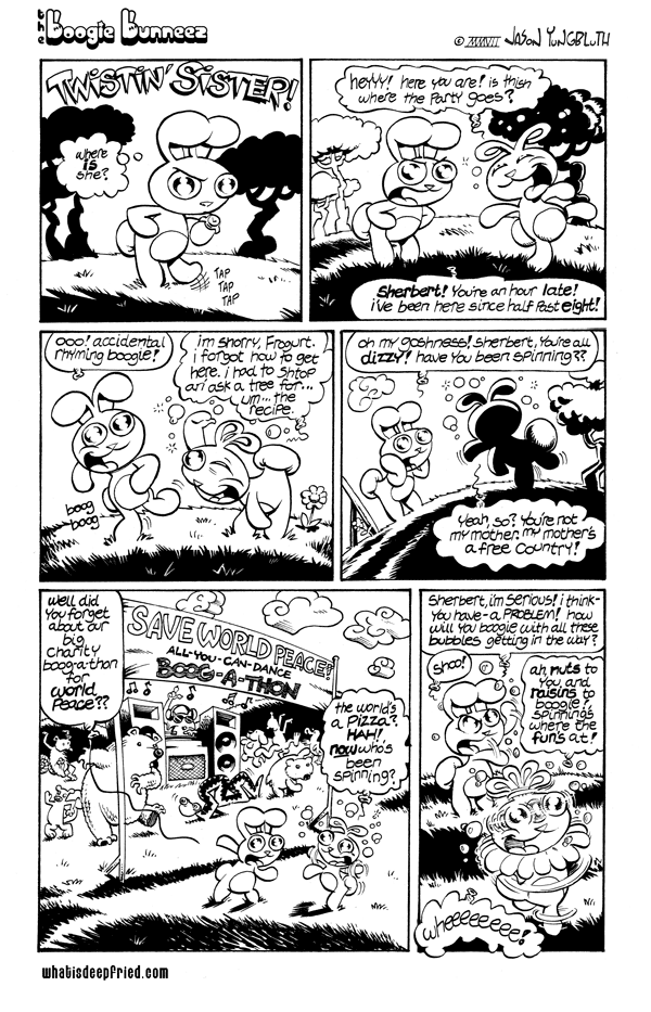Is boogie really a slippery slope to harder forms of merriment?? Yogurt and Num Numz must intervene to save Sherbert and the world! Read the whole “Twistin Sister” story here.