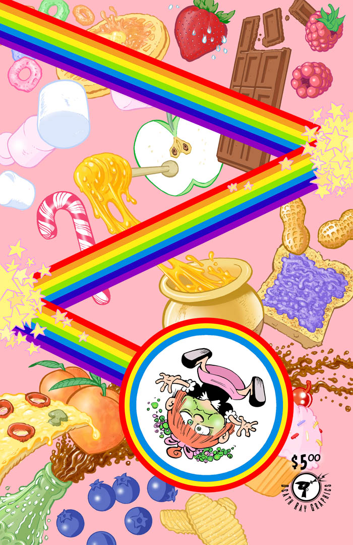 Join the all-seeing, all-spoiling Peeker as he delves into a negative universe and plucks from it a series of awkwardly hilarious stories to entertain mortal Man! This debut issue of PEEK! features famous cartoon mascots plotting world domination, snack foods with unresolved relationship issues, and “Take Me to Work Day”, starring Clarissa in her long awaited return!