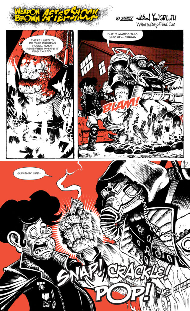 Here is the first piece of animation from the animated trailer I am creating for the Weapon Brown: Aftershock Kickstarter. It’s turning out better than I expected, so I guess I won’ be hittin’ the booze tonight!