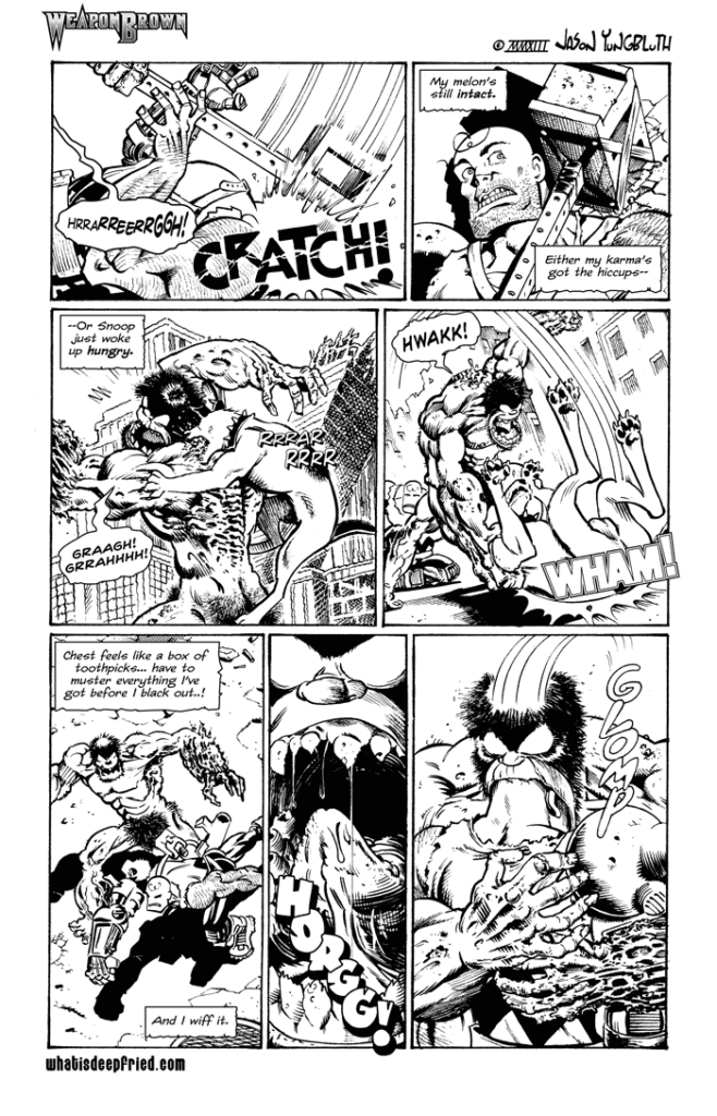Weapon Brown 46 by JY on April 9, 2013 at 12:00 am Chapter: 3 Troglodytes └ Tags: Alley Oop, Weapon Brown 5 Comments
