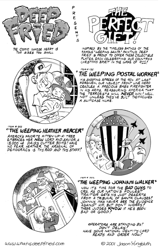 └ Tags: american taliban, Beepo, christmas, daisy cutter, Deep Fried, Jason Yungbluth, john walker, plate, Roadkill