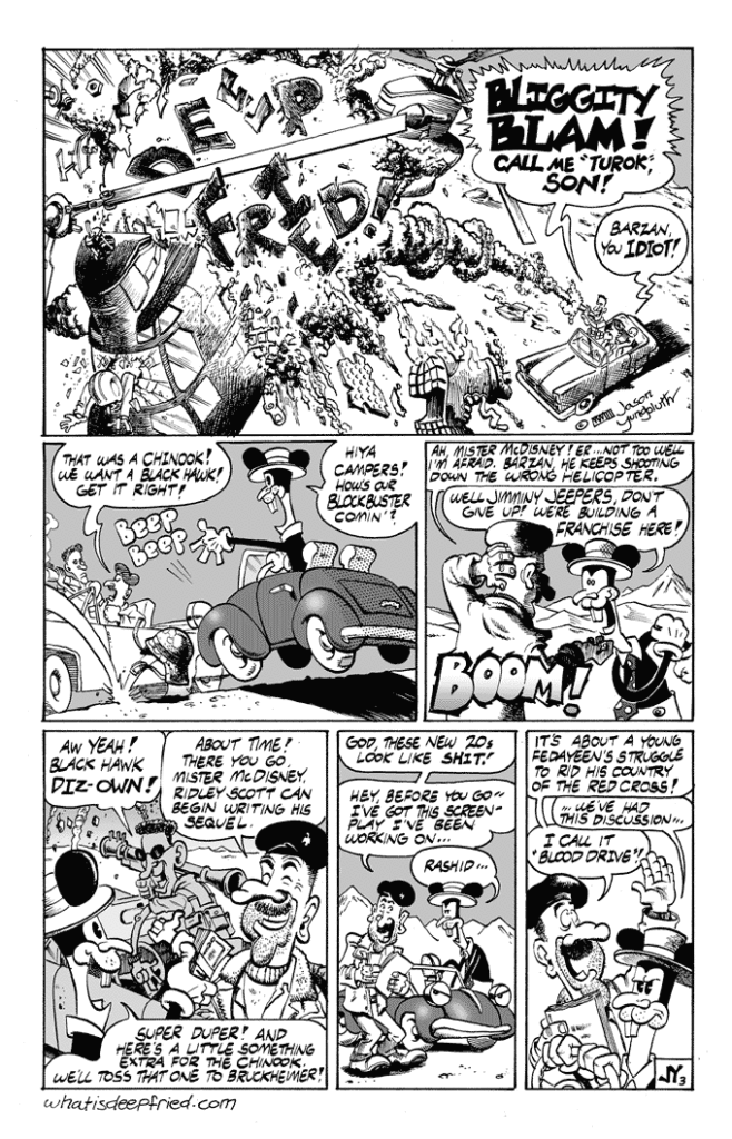 Blackhawk Doubledown by JY on November 9, 2003 at 2:42 pm Chapter: 1 Mixed Nutz └ Tags: Beepo, Blackhawk Down, comic, Comics, Deep Fried, Iraq, Jason Yungbluth, Roadkill Comment