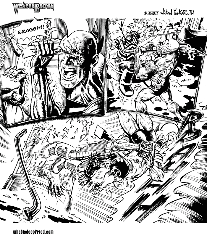 └ Tags: bloody eye, Cal. Moomin, Chuck, epic Highlander-style duel to the death, fighting, glass shard, laboratory