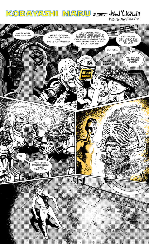 Alright gang, listen up! I have been ping-ponging for a while between the Kobayashi Maru and Deep Fried strips, but starting next week it’s Deep Fried straight through until I finish the “Costume Drama” story line, about six more installments.[…]↓ Read the rest of this entry…