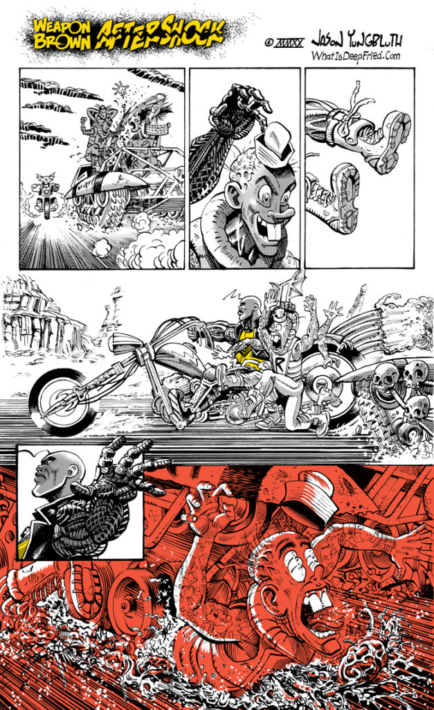 Hey, didja click that “New Art For Sale” Banner above? ALLLLLLL the Weapon Brown: Aftershock pages are there, just waiting to be snapped up! Jus’ sayin!