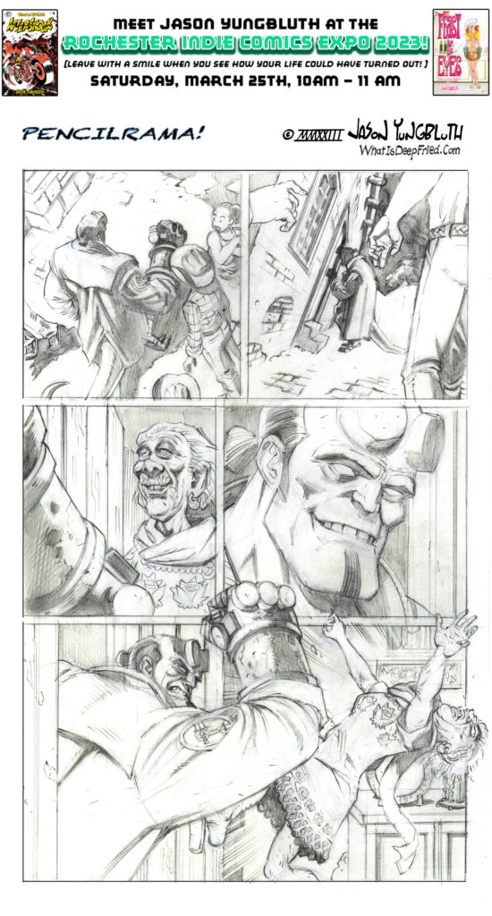 My Season of Samples continues! I am now working on some pencils to dazzle the equestrian editors at Dark Horse comics! Join me as I remind the world why Mike Mignola is a household name, whereas my name is only[…]↓ Read the rest of this entry…