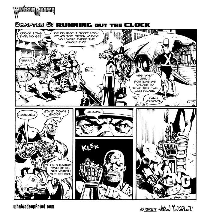 Weapon Brown 59 by JY on May 2, 2013 at 12:00 am Chapter: 4 Mojo Rising └ Tags: BC, Crokk, Weapon Brown 8 Comments