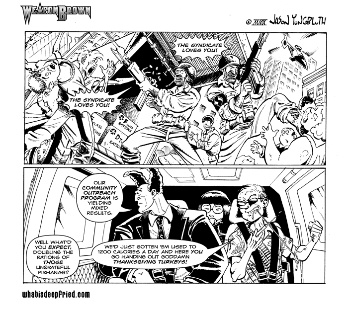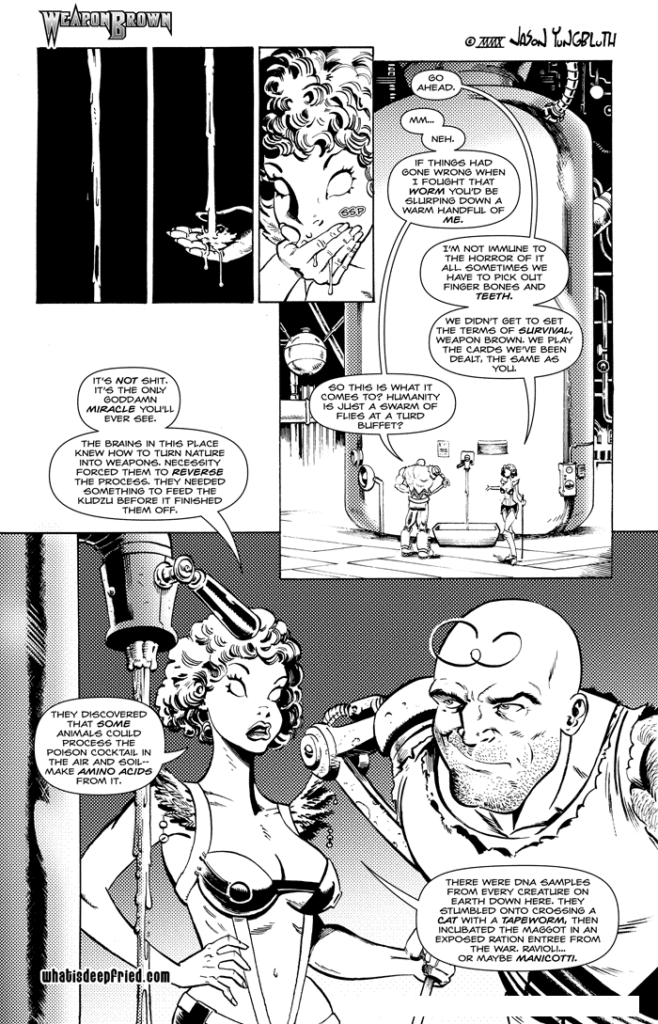 Weapon Brown 180 by JY on December 3, 2013 at 12:00 am Chapter: 8 Cat Scratch Fever └ Tags: Anne, food, Pickles, Roz, Schuck, Shmoo, Shoe 27 Comments