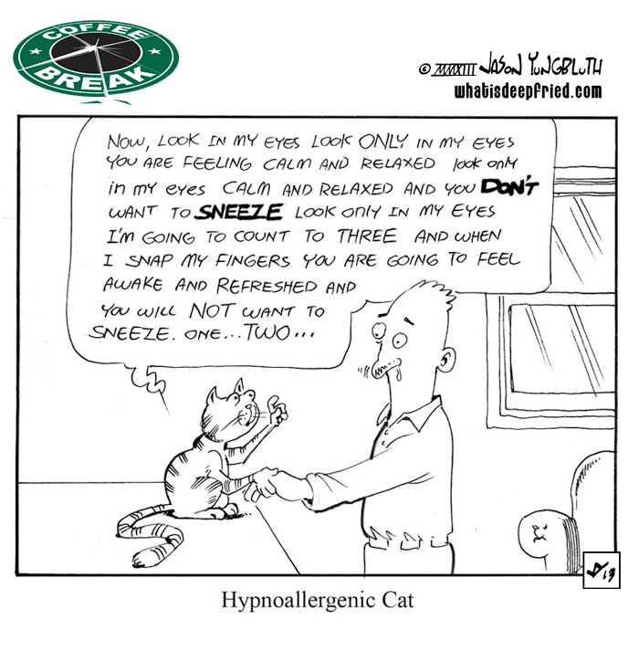 Coffee Break: The Amazing Mittens by JY on August 9, 2013 at 12:00 am Chapter: COFFEE and CREAM └ Tags: cat, comic, Comics, hypnosis, yungbluth 1 Comment