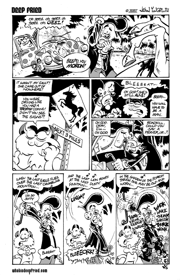 Unicorn X-ing by JY on July 24, 2006 at 12:24 pm Chapter: 1 Mixed Nutz └ Tags: Beepo, Deep Fried, Jason Yungbluth, Last Unicorn, Roadkill, unicorn 2 Comments